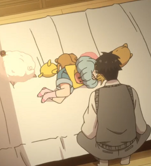The first family is a father and daughter. Kōhei Inuzuka is left a widower after his wife’s passing. His daughter, Tsumugi Inuzuka is still quite young. She’s only in kindergarten, and therefore she’s solely dependent on her dad for almost every need. Kōhei struggles with the demands of being a single parent.
