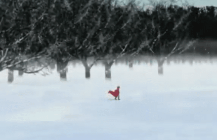 Her almost lackadaisical steps across the snow covered land are gentle. They seem light, as if she’s trying not to leave deep tracks.