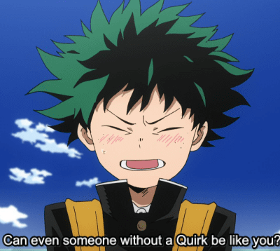 We all go through that. There isn’t a person I can think of who hasn’t doubted some key facet of themselves to the point of nearly giving up. Deku nearly gives up his dream in the first episode.